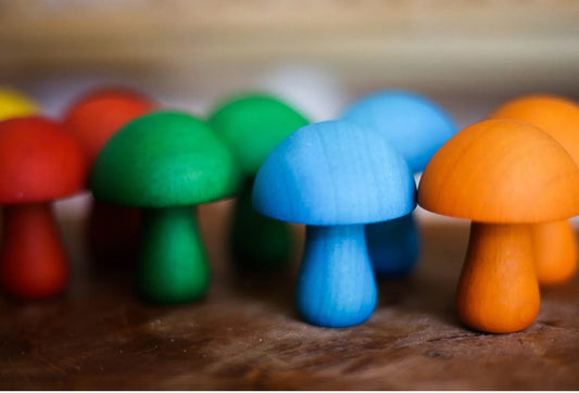 Set of 10 Wooden Mushrooms